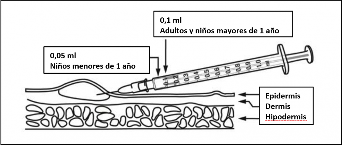 Figura 40.6. Vía y dosis de la vacuna BCG